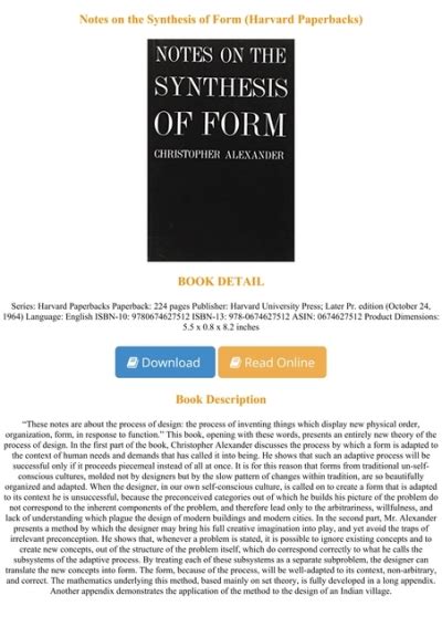 Download Notes on the Synthesis of Form Harvard Paperbacks Kindle Editon By Click Button. Notes on the Synthesis of Form Harvard Paperbacks it’s easy to recommend a new book category such as Novel, journal, comic, magazin, ect. You see it and you just know that the designer is also an author and understands the challenges involved with having a good book. You can easy klick for detailing book and you can read it online, even you can download it